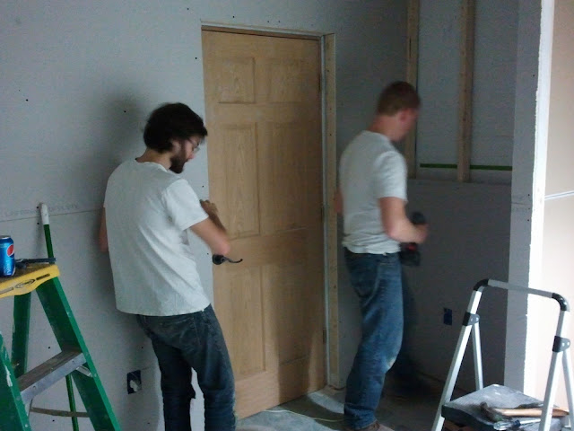 All of our hard work paid off because we finished the room on time! My cousin's wedding was this past weekend and we had some family come and stay with us.....the only problem was we didn't have a guest room. So we made one! (with lots of help from my brother and in-laws! Thanks guys!)